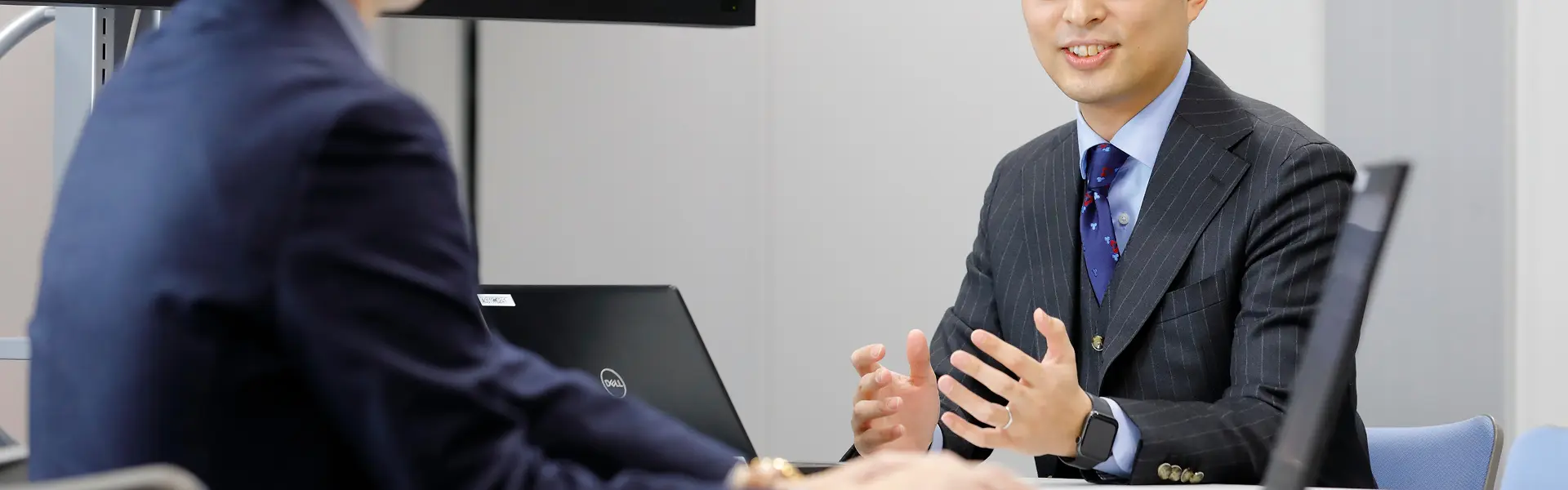 営業部での何よりのやりがいは「店舗スタッフとして、お客さま一人ひとりに合わせたスタイリング提案ができること」です。自分の接客に対してお客さまからお褒めのお言葉をいただけることはもちろん、自らが教育した新人スタッフの成長を間近に感じたり、社内の評価制度の一つである「表彰式」に招待されたりすることも大きなやりがいに繋がります。